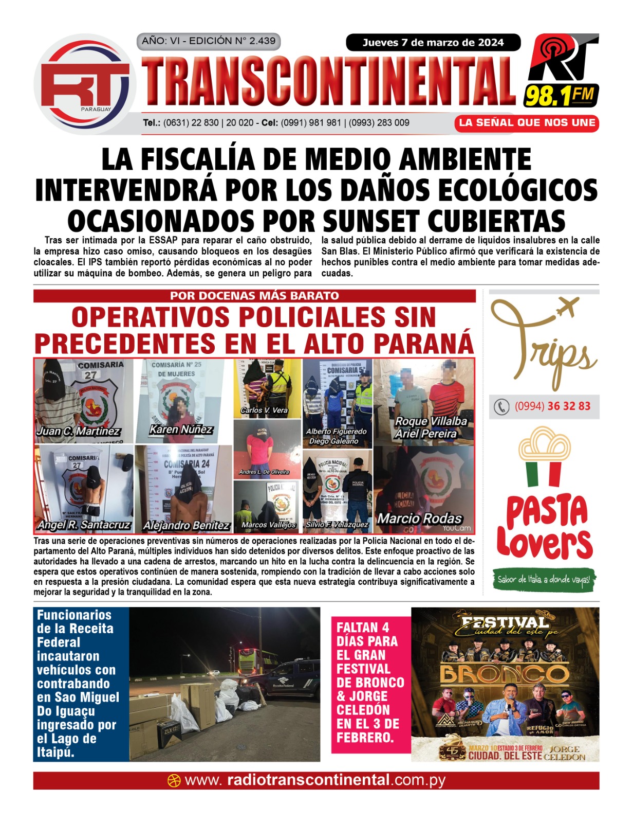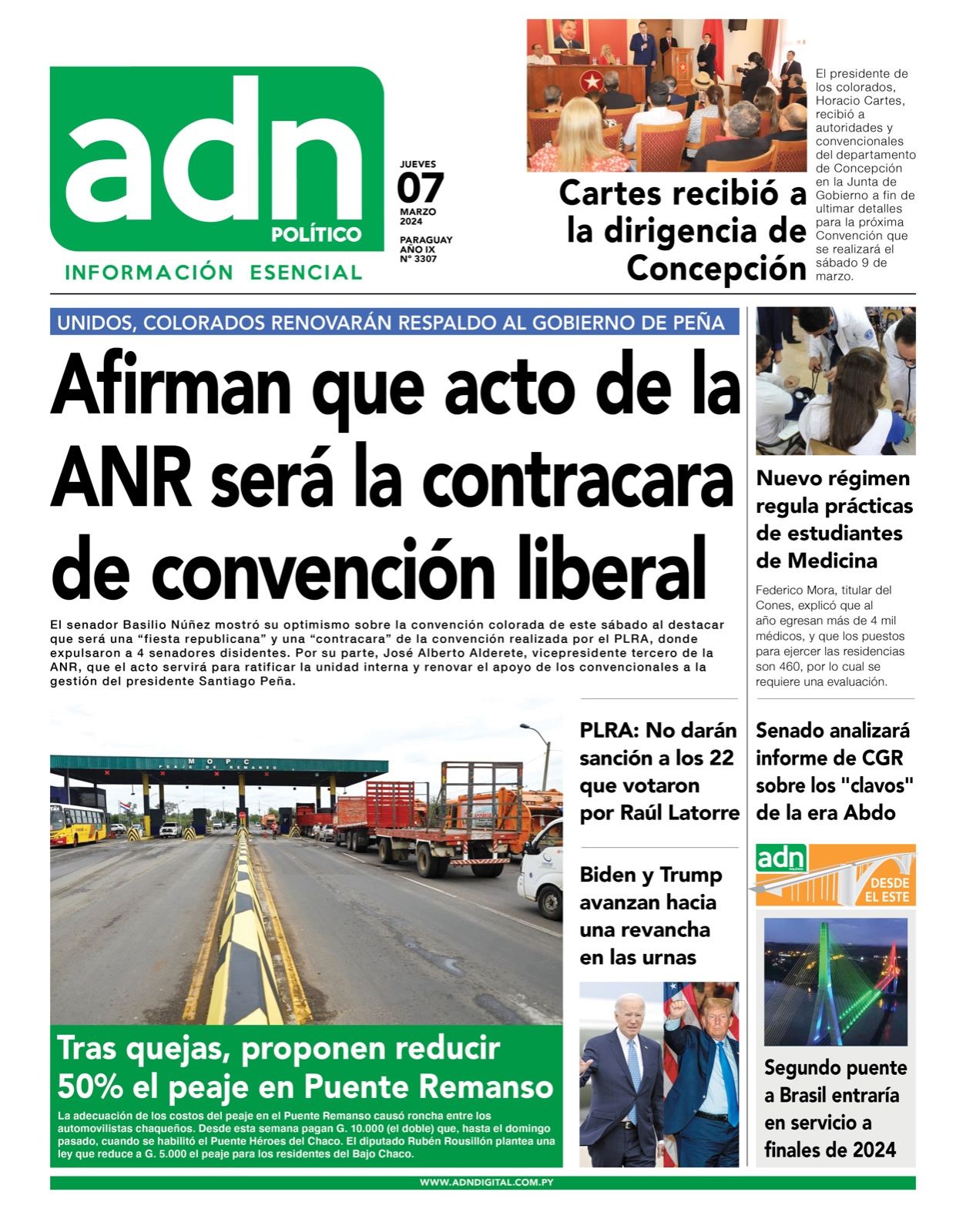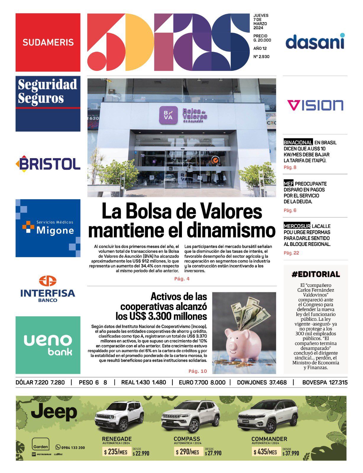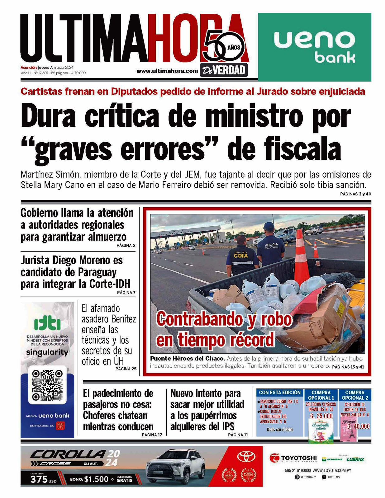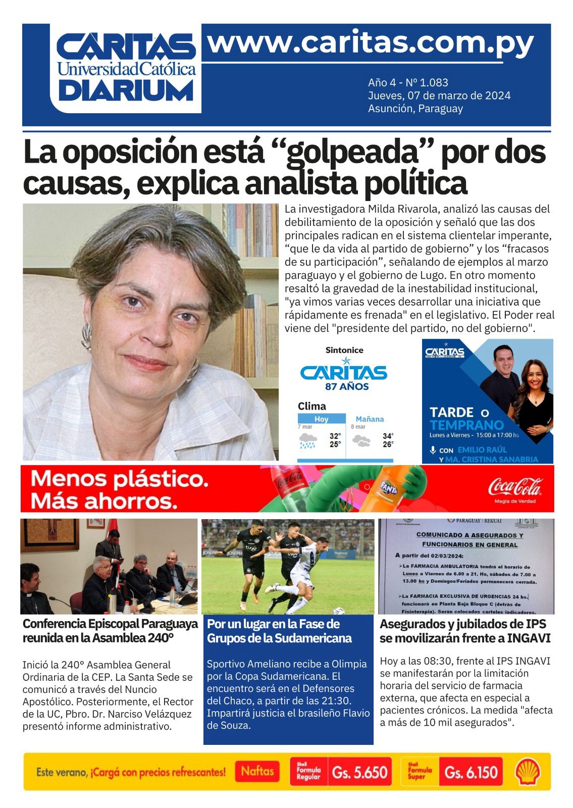 TitularesTitulares 7 de marzo 2024 Last updated: marzo 7, 2024 06:03 Oñondive Share 0 Min Read SHARE Titulares 16 de abril 2023 Titulares 28 de julio 2023 Titulares 18 de febrero 2024 Titulares 23 de junio 2023 Titulares 19 de setiembre 2023Suscríbase al Boletín¡Manténgase al día! Reciba las últimas noticias de última hora directamente en su bandeja de entrada.[mc4wp_form]Al registrarse, acepta nuestras Condiciones de uso y reconoce las prácticas de datos en nuestra Política de privacidad. Puedes darte de baja en cualquier momento. Share This Article Facebook Whatsapp Whatsapp Copy Link Print Share Previous Article Titulares 6 de marzo 2024 Next Article Titulares 8 de marzo 2024 No hay comentarios No hay comentarios Deja una respuesta Cancelar la respuestaTu dirección de correo electrónico no será publicada. Los campos obligatorios están marcados con *Comentario *Nombre * Correo electrónico * Web Guarda mi nombre, correo electrónico y web en este navegador para la próxima vez que comente. Δ SíguenosEncuéntrenos en las Redes SocialesFacebookLikeXFollowInstagramFollowYoutubeSubscribeNoticias Destacadas Titulares Titulares 29 de mayo 2024 Oñondive mayo 29, 2024 Titulares 9 de abril 2024 Titulares 8 de marzo 2024 Titulares 7 de marzo 2024 Titulares 6 de marzo 2024- Advertisement -